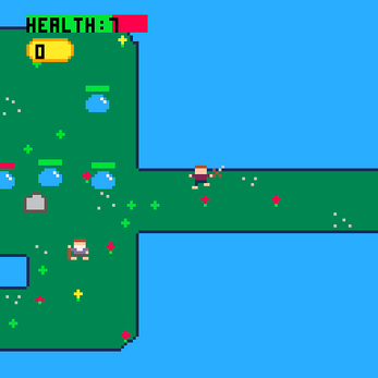 You're a mighty hero who has to defend himself from slimes attacking. Get a sword from the old man.